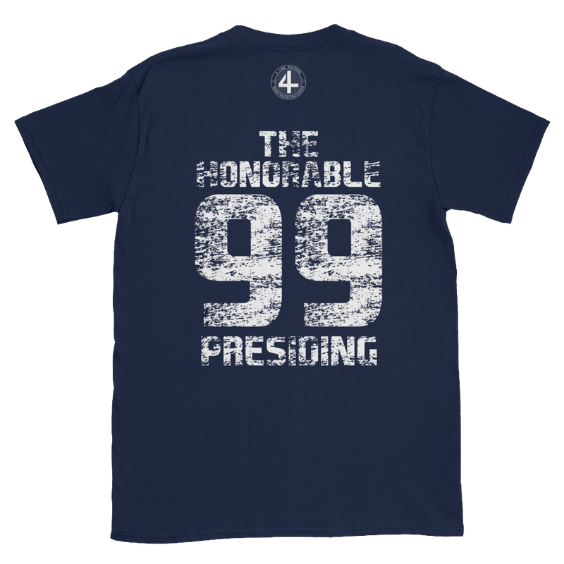 A 4 Line Faithful exclusive featuring "All Rise" on the front, and "The Honorable 99 Presiding" on the back – this Aaron Judge shirt should definitely have a spot in your closet!